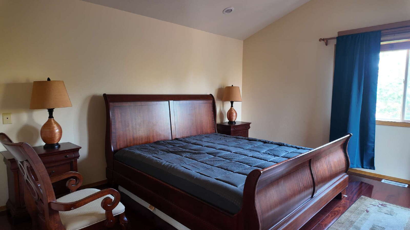 The kitchen is fully equipped with everything you need, and the home comes complete with linens, kitchenware, and décor throughout. Step outside to enjoy the open backyard surrounded by fruit trees (apple, apricot, and grapevines) mature pine trees, rose bushes and other landscaping that offers space to relax and unwind.